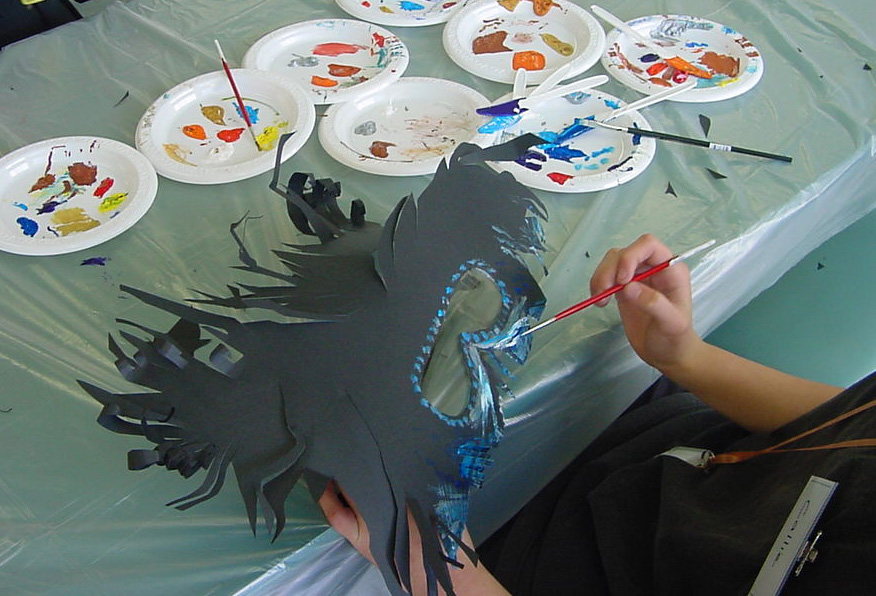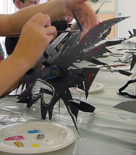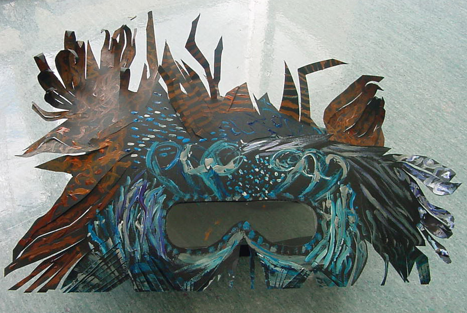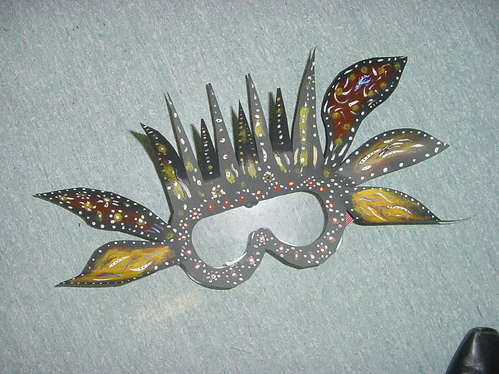 During my ten years as the Regional Arts Coordinator for Western Sydney, NSW DET and the NSW Arts Unit, I hosted several camps for talented children. These masks were made by the students at the Up Front Face On Drama Camp and were used by the students in their final performance at the camp.